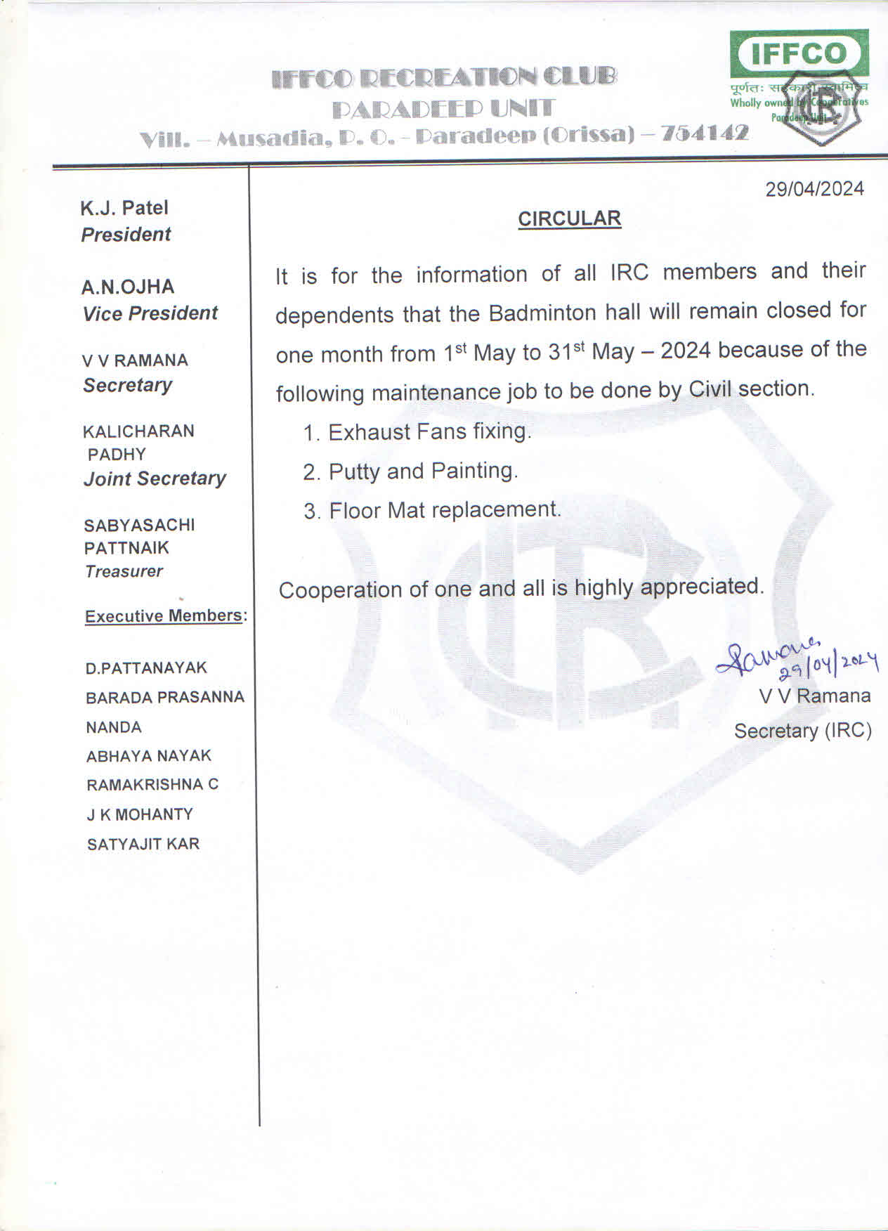 Please refer to the attachment for more details. With Best Regards, -------------------------------- V V Ramana Secretary (IRC) IFFCO Paradeep unit